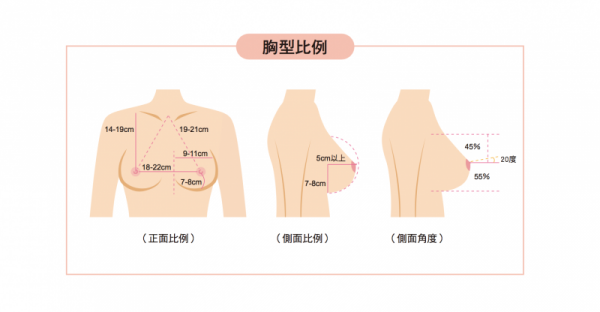 一個完美的胸型,你會看到在鎖骨中央的凹點,到兩邊乳房尖端,是一個正三角形,兩邊乳房尖端到肚臍點,也是距離相等的正三角型。如下圖