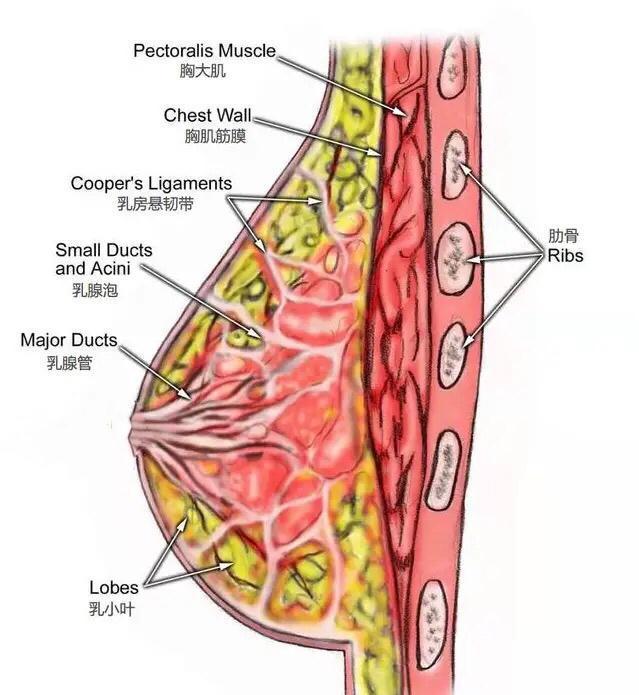女性的胸部主要由脂肪、皮膚、纖維組織、乳腺及肌肉這五大組織構成。